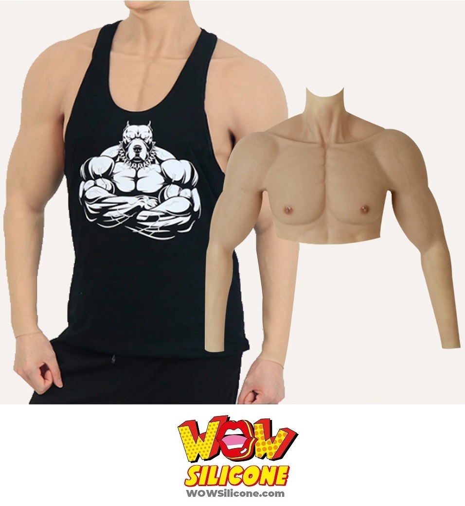 Muscle Man Chest Plate. Both versions require a cable pulley machine. It is soft and highly elastic with realistic touch portable version of male muscle.
